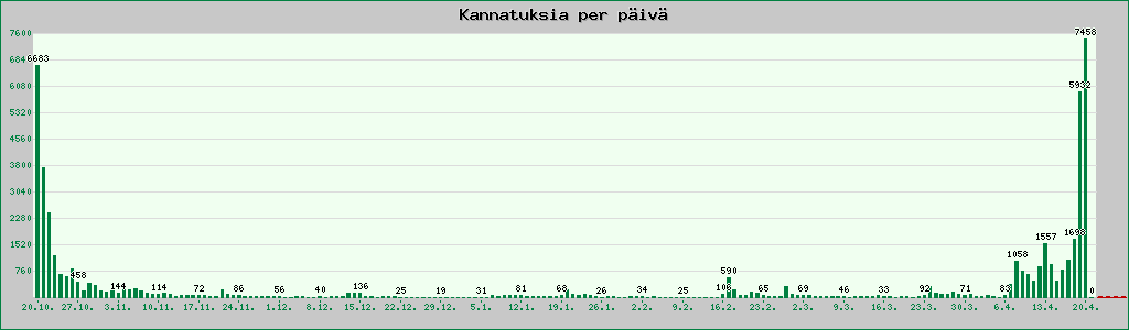 | 20.10.2022: 6683 21.10.2022: 3748 22.10.2022: 2468 23.10.2022: 1216 24.10.2022: 680 25.10.2022: 602 26.10.2022: 827 27.10.2022: 458 28.10.2022: 218 29.10.2022: 417 30.10.2022: 370 31.10.2022: 217 01.11.2022: 181 02.11.2022: 221 03.11.2022: 144 04.11.2022: 394 05.11.2022: 240 06.11.2022: 262 07.11.2022: 209 08.11.2022: 138 09.11.2022: 107 10.11.2022: 114 11.11.2022: 141 12.11.2022: 103 13.11.2022: 59 14.11.2022: 76 15.11.2022: 74 16.11.2022: 73 17.11.2022: 72 18.11.2022: 75 19.11.2022: 63 20.11.2022: 53 21.11.2022: 228 22.11.2022: 97 23.11.2022: 73 24.11.2022: 86 25.11.2022: 52 26.11.2022: 33 27.11.2022: 58 28.11.2022: 48 29.11.2022: 55 30.11.2022: 59 01.12.2022: 56 02.12.2022: 30 03.12.2022: 28 04.12.2022: 36 05.12.2022: 34 | 06.12.2022: 28 07.12.2022: 19 08.12.2022: 40 09.12.2022: 26 10.12.2022: 43 11.12.2022: 58 12.12.2022: 56 13.12.2022: 141 14.12.2022: 154 15.12.2022: 136 16.12.2022: 56 17.12.2022: 45 18.12.2022: 25 19.12.2022: 42 20.12.2022: 60 21.12.2022: 35 22.12.2022: 25 23.12.2022: 22 24.12.2022: 24 25.12.2022: 12 26.12.2022: 22 27.12.2022: 22 28.12.2022: 16 29.12.2022: 19 30.12.2022: 19 31.12.2022: 10 01.01.2023: 11 02.01.2023: 20 03.01.2023: 22 04.01.2023: 25 05.01.2023: 31 06.01.2023: 27 07.01.2023: 93 08.01.2023: 53 09.01.2023: 94 10.01.2023: 66 11.01.2023: 77 12.01.2023: 81 13.01.2023: 43 14.01.2023: 40 15.01.2023: 45 16.01.2023: 60 17.01.2023: 48 18.01.2023: 54 19.01.2023: 68 20.01.2023: 226 21.01.2023: 109 | 22.01.2023: 64 23.01.2023: 121 24.01.2023: 74 25.01.2023: 40 26.01.2023: 26 27.01.2023: 37 28.01.2023: 37 29.01.2023: 21 30.01.2023: 20 31.01.2023: 33 01.02.2023: 33 02.02.2023: 34 03.02.2023: 30 04.02.2023: 32 05.02.2023: 29 06.02.2023: 28 07.02.2023: 19 08.02.2023: 21 09.02.2023: 25 10.02.2023: 28 11.02.2023: 21 12.02.2023: 29 13.02.2023: 25 14.02.2023: 17 15.02.2023: 20 16.02.2023: 106 17.02.2023: 590 18.02.2023: 242 19.02.2023: 72 20.02.2023: 88 21.02.2023: 178 22.02.2023: 129 23.02.2023: 65 24.02.2023: 50 25.02.2023: 58 26.02.2023: 46 27.02.2023: 333 28.02.2023: 126 01.03.2023: 91 02.03.2023: 69 03.03.2023: 92 04.03.2023: 49 05.03.2023: 52 06.03.2023: 46 07.03.2023: 44 08.03.2023: 47 09.03.2023: 46 | 10.03.2023: 31 11.03.2023: 40 12.03.2023: 35 13.03.2023: 39 14.03.2023: 45 15.03.2023: 67 16.03.2023: 33 17.03.2023: 34 18.03.2023: 29 19.03.2023: 38 20.03.2023: 39 21.03.2023: 28 22.03.2023: 52 23.03.2023: 92 24.03.2023: 330 25.03.2023: 142 26.03.2023: 108 27.03.2023: 120 28.03.2023: 164 29.03.2023: 114 30.03.2023: 71 31.03.2023: 109 01.04.2023: 47 02.04.2023: 58 03.04.2023: 64 04.04.2023: 43 05.04.2023: 31 06.04.2023: 83 07.04.2023: 408 08.04.2023: 1058 09.04.2023: 763 10.04.2023: 675 11.04.2023: 484 12.04.2023: 899 13.04.2023: 1557 14.04.2023: 956 15.04.2023: 479 16.04.2023: 816 17.04.2023: 1085 18.04.2023: 1698 19.04.2023: 5932 20.04.2023: 7458 21.04.2023: 0 |